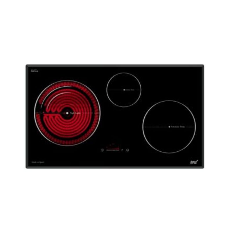 – Sở hữu 3 vùng nấu gồm 1 bếp hồng ngoại, 2 bếp từ có kích thước khác nhau.